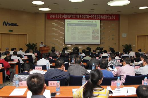 9月29日,中国科学院空间科学战略性先导科技专项(简称空间科学先导专项)2013年度工作推进会暨实践十号卫星工程转初样阶段动员会在国家空间科学中心召开。中国科学院副院长、空间科学先导专项领导小组组长兼空间科学卫星工程总指挥阴和俊出席会议并做重要讲话。中国科学院副秘书长潘教峰,中科院重大科技任务局、条件保障与财务局、发展规划局和中国航天科技集团公司宇航部相关负责人,空间科学先导专项负责人、空间科学卫星项目首席科学家、空间科学卫星工程两总以及各参研单位代表170余人出席会议。会议由中国科学院重大科技任务局副局长于英杰主持。