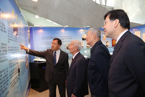 阴和俊、王希季、孙家栋、吴季共同为中国科学院与东方红一号专题展揭幕
