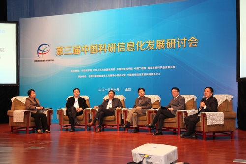 10月21日至22日,第三届中国科研信息化发展研讨会在北京国家会议中心举行。本次大会由中国科学院、教育部、中国社会科学院、中国工程院以及国家自然科学基金委员会共同主办,中国科学院信息化工作领导小组办公室与中国科学院计算机网络信息中心承办。中国科学院副院长张亚平、教育部科学技术司副巡视员高润生、中国社会科学院院长助理郝时远、国家自然科学基金委副主任何鸣鸿致欢迎辞,共有来自有关部委、科研院所、高校、知名IT企业以及新闻媒体代表等350余人参加了本次会议。