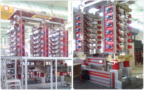 左:准备进行出厂试验的整流桥 右:装配完成的外旁通设备