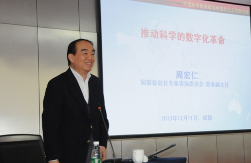 在题为《推动科学的数字化革命》的报告中,周宏仁表示,信息化的首要问题是数字化,而科学研究领域是数字化还未开垦的领地,蕴含着丰富的宝藏。科学的数字化革命需要应对来自学科的数字化、计算机辅助科学研究和战略性新兴学科的挑战,科学家对于“科学研究”的认知和科学家的知识结构,也必须发生重大的转变。