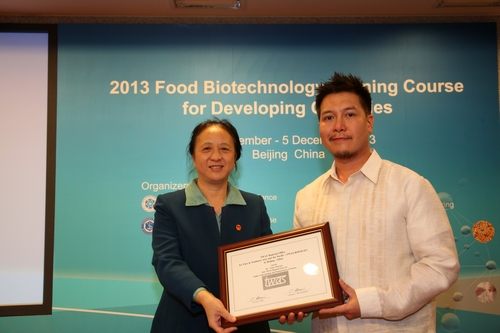 开幕式上,方新为获得2013年度发展中国家科学院——东亚、东南亚及太平洋地区奖的菲律宾理工学院的青年学者Custer Deocaris博士颁奖,以表彰他在促进科学普及和科技发展中作出的突出贡献。同时她还为参加本次培训班的授课老师颁发了证书。