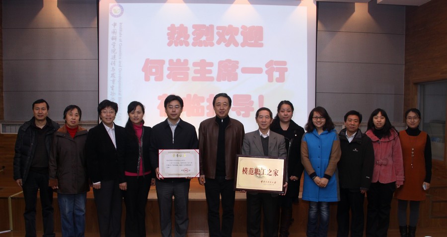 12月6日,中科院遗传与发育生物学研究所荣获“全国模范职工之家”授匾仪式在京隆重举行,中科院党组成员、工会主席何岩出席活动。遗传发育所副所长、党委副书记胥伟华主持了授匾仪式。