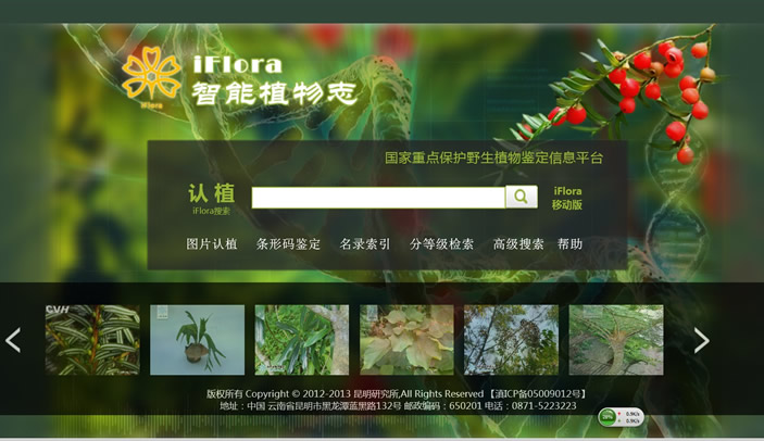 新一代智能植物志iFlora计划的阶段性目标之一是构建中国维管植物和重要大型真菌的开放、共享的数据平台。中国科学院昆明植物研究所结合“一三五”任务的实施,在国家科技部科技基础性工作专项项目和国家高技术研究发展计划项目的支持下,依托中国西南野生生物种质资源库、中国科学院生物多样性和生物地理学重点实验室(标本馆)和科技信息中心,构建了iFlora的一个重要共享平台——“国家重点保护野生植物鉴定信息平台”。