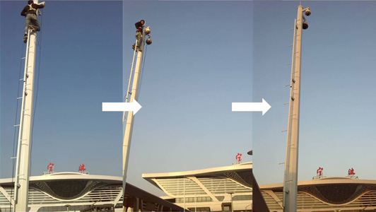 宁波火车站(宁波南站)于2013年12月28日正式启用,投入运营第四天(2014年1月1日),在车站有关人员的安排下,宁波材料所计算机视觉团队工程师徐刚和罗志强在站前南广场上,安装试用团队自主研发的360度全景摄像机。这次成功安装调试是宁波材料所研发的360度全景摄像机首次进驻车站治安监控领域,为宁波火车站安防保驾护航。