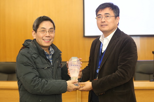 吴一戎所长向施尔畏副院长赠送科电论坛纪念牌