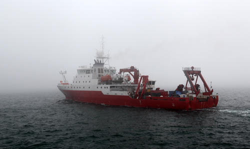中科院海洋研究所所长孙松、副所长李铁刚向“科学”号船长隋以勇和航次首席科学家李超伦授旗,希望全体船队员秉承不畏艰险、奋勇拼搏的优良传统,顺利完成此次海上科学考察各项任务,预祝“科学”号首个航次取得圆满成功。