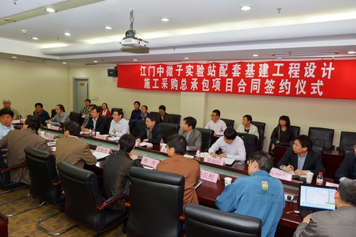 4月16日,江门中微子实验站配套基建工程总承包项目合同签约仪式及土建与科研需求讨论会在中国科学院高能物理研究所举行。