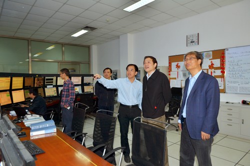 随后,陆明一行参观了北京正负电子对撞机、北京谱仪和北京同步辐射装置。所长助理秦庆、多学科中心副主任胡天斗对设施进行了详尽的讲解。陆明一行对北京正负电子对撞机等大科学装置进行基础及应用研究,特别是发挥了带动国家高技术全面发展的作用赞叹不已。