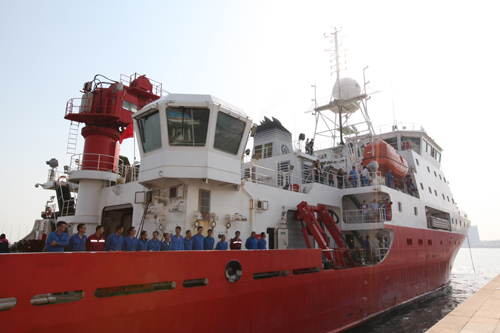 5月12日,“科学”号海洋科学综合考察船完成首航返回青岛奥帆基地码头。中国科学院海洋研究所相关负责人以及科考船运管中心、研究室代表和船队员家属等到码头迎接。