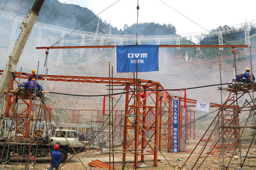 7月17日,随着第一根主索的安装,中国科学院国家天文台500米口径球面射电望远镜反射面索网制造与安装工程正式步入工程实施阶段。