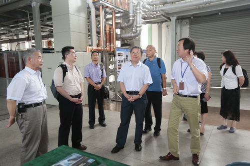 曹健林一行考察了射频加热实验室、东方超环(EAST)实验大厅、ITER超导导体生产车间、ITER无功补偿实验平台、ITER内部线圈实验室、CFETR真空室研制实验室以及ITER补偿场线圈研制车间等,实地了解了研究所新增的实验平台与当前的工程技术水平。曹健林在ITER电源大厅参观了世界最大直流测试平台,并在低温及遥控实验室与法国原子能委员会(CEA)VILLEDIEU Eric教授就项目合作研究进展进行交流。