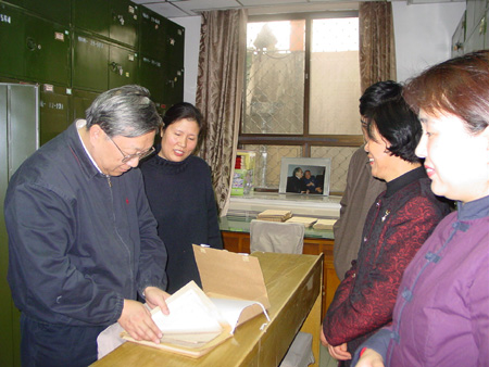 路院长参观了档案处的名人档案,饶有兴趣地抽卷查阅。(摄影:张子健)