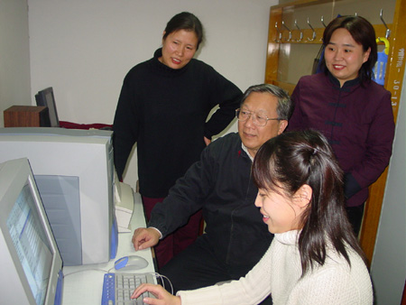 路院长视察名人档案计算机检索系统。(摄影:张子健)