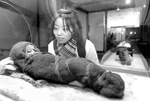 约公元前800年的扎滚鲁克婴儿木乃伊将首次在本市展出。明天,《天山·古道·东西风——新疆丝绸之路文物特展》将在中国历史博物馆启动,展品的时代跨度从约公元前9世纪至公元10世纪。其中,塔克拉玛干沙漠出土的男尸、婴尸等都是首次亮相北京。展览将于4月15日结束。