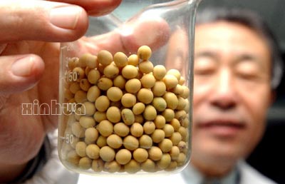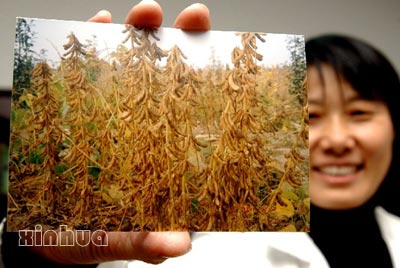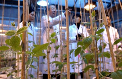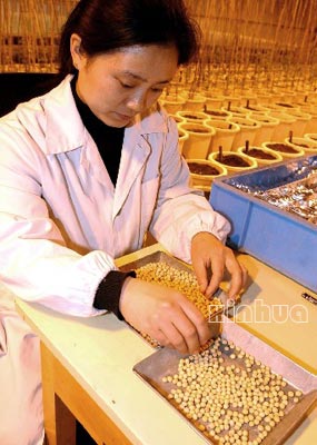 1月16日,吉林省农科院的科研人员在研究大豆生长情况。以大豆遗传学家、吉林省农科院研究员孙寰为首的课题组经过20年的不懈努力,培育出大豆杂交种。这是我国农业科技领域里的一项重要成果,对大幅度提高大豆产量,增进人类健康具有重大意义。此前,世界范围内大豆单产每年只提高0.5%;而此项结果表明,大豆杂交种比目前当地的主栽品种增产20%以上,同时制种技术也取得了突破。新华社记者 徐家军 摄