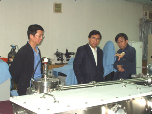 5月13日上午,中国科学院副院长白春礼与中科院基础局有关负责同志到物理研究所检查指导工作。在该所,白春礼一行参观了中科院光物理重点实验室、微加工实验室、表面物理国家重点实验室等。白春礼在充分肯定物理所近期取得的优异成绩同时,指示该所在当前形势下,要一手抓好“非典”预防工作,一手抓好科研工作。 5月13日上午,中国科学院白春礼副院长、基础局黄勇副局长、基础局理化处刘佩华处长到物理研究所检查指导工作。