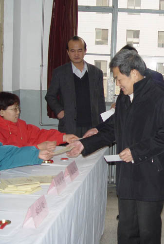12月10日,中国科学院作为三里河地区三选区投票站,迎来了包括中国科学院在内的二十多个单位的三千多名选民在此投下自己庄严的选票。8点30分,中科院副院长白春礼、党组副书记郭传杰等冒雪来到投票站,认真地在介绍代表候选人情况的展板前了解候选人的情况,随后来到验证处、发票处、解说处领取自己的公民选票。他们在听取工作人员介绍的填写注意事项后,仔细地在选票上进行填写,随后在投票箱前投下了自己庄严的一票。 12月10日,中国科学院作为三里河地区三选区投票站,迎来了包括中国科学院在内的二十多个单位的三千多名选民在此投下自己庄严的选票。8点30分,中科院副院长白春礼、党组副书记郭传杰等冒雪来到投票站,认真地在介绍代表候选人情况的展板前了解候选人的情况,随后来到验证处、发票处、解说处领取自己的公民选票。他们在听取工作人员介绍的填写注意事项后,仔细地在选票上进行填写,随后在投票箱前投下了自己庄严的一票。