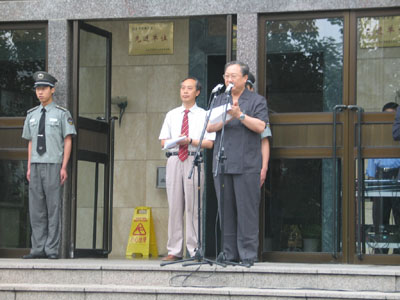 全国人大常委会副委员长、中国科学院党组书记、院长路甬祥在升旗仪式上代表院党组致辞。