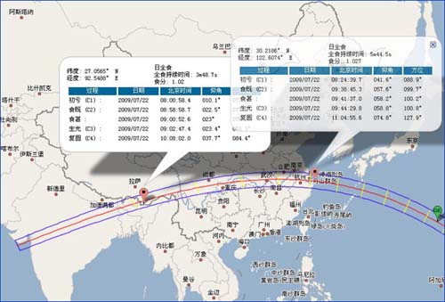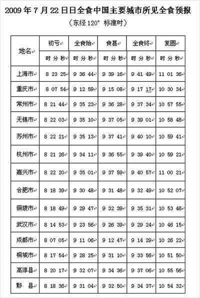 5月19日,“2009国际天文年日全食观测和科学普及活动周”新闻发布会在中国科学院国家天文台举行。此次新闻发布会是由中国科学院、中国科学技术协会、科技部、国家自然科学基金委员会联合主办。 2009年7月22日上午8时左右,将发生本世纪最重要的一次日全食,中国是最佳观测地。从初亏至复圆长达两个多小时,中国境内可以看到的最长日全食时间可达6分钟,全食带宽度可达250公里,自西向东经过西藏南部、四川中部、湖北南部、河南南部、安徽南部、江苏南部、浙江北部和上海等省市。 日全食是日、月、地三体位置处于一个特殊相位时发生的天象。日全食的发生,为科学研究、科普教育和观光旅游带来了机遇。但是,日全食也会对自然环境和社会正常运转带来影响,如果政府和相关部门没有应对措施,甚至可能造成重大事故和事件。突然间长达五分多钟的“黑天”,可能对道路交通、航运、高空和野外作业、建筑施工、医疗、教学、商业活动以及社会治安等带来安全隐患。日全食造成的天体的引力、光度等变化,有可能会对通信系统、网络传播、电力输送和使用等产生不确定的影响。此外,在日全食发生的某些阶段,如果不采用科学的观看方法,将会对人的眼睛造成伤害,甚至造成观看者永久失明。在以往的日全食观赏中,屡有发生这种伤害事件。 日全食为观测研究太阳色球和日冕高层大气以及地球电离层和重力结构及变化提供了难得的机会。中国科学院和国家自然科学基金委员会将组织系列日全食科学观测课题,在日全食期间进行光学、近红外及射电波段的多波段联合观测,研究太阳的色球、日冕物理性质、太阳系行星以及地球电离层和重力变化规律等。 日全食期间,中国科学院天文口有关天文台站将联合当地政府,以“2009国际天文年日全食科学观测和科普活动周”的形式,举办多点互动的科普活动,藉此大力普及科学知识,推动全民科学素质的提高。新闻发布会上,中国天文学会和国家天文台联合向铜陵、桐城、黟县、嘉兴、苏州、高淳、常州、无锡等八个城市颁发了“2009年日全食指定观测点”的牌匾和证书。这些处于全食带中心线的城市已经结合当地文化特点,策划和组织了一系列日全食观测和科普活动。 观测日全食时,应尽可能选择晴天的地区,并且要注意眼睛的安全。因为太阳光比月光强一百万倍,所以不能用肉眼或者通过没有减光设备的望远镜直接观看,否则容易造成视网膜损伤,甚至失明。日偏食期间,比较安全的方法是戴一副日全食观测镜,或者用装有墨水的水盆通过反射观看。用望远镜观测时一定要在目镜或探测器前加滤光片,以免灼伤眼睛。全食期间,可以用肉眼来直接观看,用望远镜拍摄之前,要去掉减光板或滤光片。