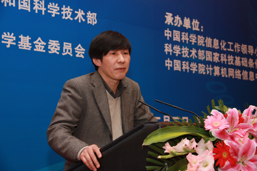 中国科学院副院长江绵恒作了题为“把握时代新特征,推进科研信息化”的主题报告,对人类社会发展的历史进程和信息社会的特征进行了深刻分析,结合中国科学院科研信息化案例,论述了推进科研信息化的重大意义。科学技术部副部长刘燕华、国家自然科学基金委员会副主任何鸣鸿分别做专题报告,结合国家科技基础条件平台建设和支撑自然科学创新发展,就科研信息化的宏观政策、发展战略、重大领域应用和科研模式变革进行了深入阐述。中国地震局地震台网中心、微软亚洲研究院、IBM中国研究院也在会上做演讲报告,介绍了科研信息化的实践和经验。