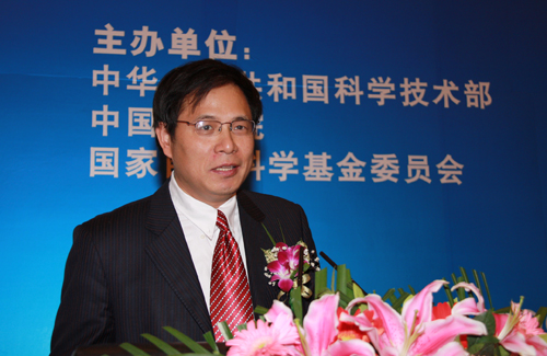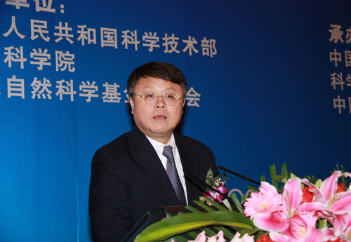 国家自然科学基金委员会副主任何鸣鸿作报告(中科院网站 记者 段煦/摄)