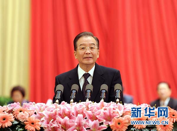 中共中央政治局常委、国务院总理温家宝代表党中央、国务院讲话。(讲话全文)