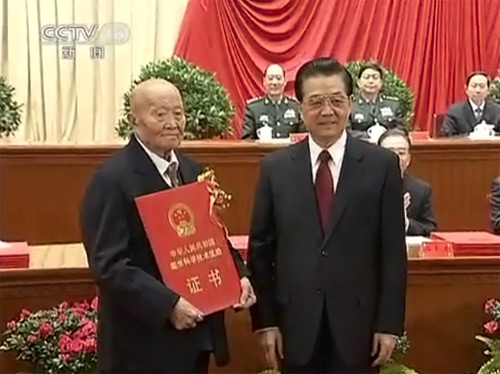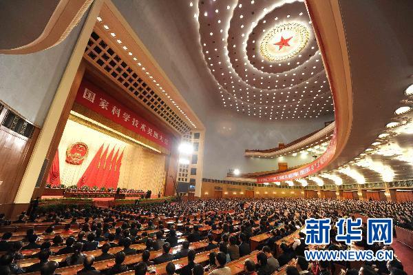 中共中央、国务院14日上午在北京隆重举行国家科学技术奖励大会。党和国家领导人胡锦涛、温家宝、李长春、习近平、李克强出席大会并为获奖代表颁奖。温家宝代表党中央、国务院在大会上讲话。李克强主持大会。