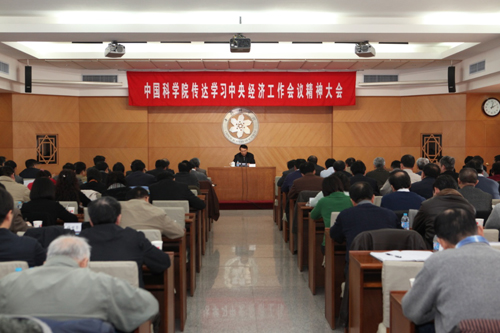 12月17日,中国科学院在京召开会议,传达学习了2012年中央经济工作会议精神。中科院院长、党组书记白春礼传达了习近平总书记、温家宝总理、李克强副总理在中央经济工作会议上的重要讲话精神,并就中科院学习贯彻会议精神提出了要求。