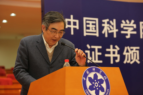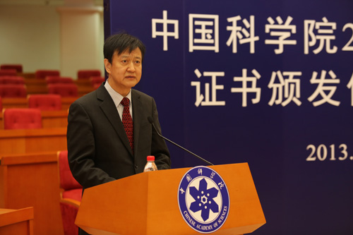 12月19日,中国科学院2013年当选院士证书颁发仪式暨座谈会在北京召开。中国科学院院长、学部主席团执行主席白春礼为新当选院士颁发了院士证书并发表重要讲话,各专门委员会和各学部常委会主任或副主任出席了座谈会,座谈会由中国科学院副院长李静海主持。