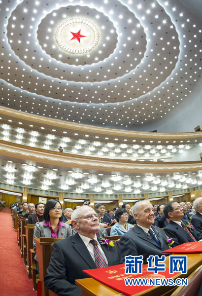 在热烈的掌声中,中共中央总书记、国家主席、中央军委主席习近平首先向获得2013年度国家最高科学技术奖的中国科学院院士、中国科学院大连化学物理研究所张存浩,中国科学院院士、中国人民解放军总装备部程开甲颁发奖励证书,并同他们热情握手,表示祝贺。随后,习近平等党和国家领导人向获得国家自然科学奖、国家技术发明奖、国家科学技术进步奖和中华人民共和国国际科学技术合作奖的代表颁奖。