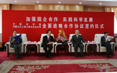 中国科学院与中国长江三峡工程开发总公司在中科院举行了全面战略合作协议签字仪式。