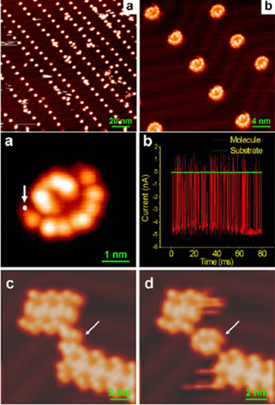 物理所实用化单分子器件的基础研究获得突破性进展 近日,中国科学院物理研究所北京凝聚态物理国家实验室高鸿钧研究组高利等专家在分子马达的研究中取得重要进展,他们首次实现了金表面上具有固定偏心轴的单分子转子及其大面积的有序组装。