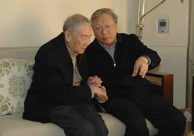 12月29日,新年临近,全国人大常委会副委员长、中科院院长路甬祥来到资深院士郑哲敏、叶笃正、刘光鼎、王绶琯的家里,向他们致以新年问候,并和他们就青年人才培养、科学发展与科技创新等问题进行了亲切交谈。