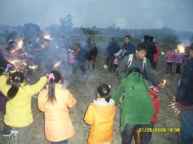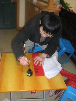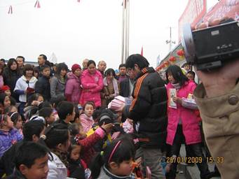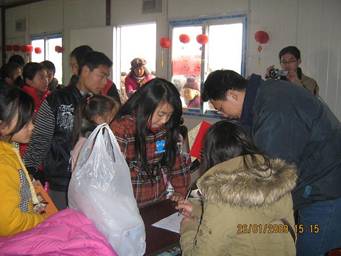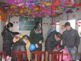 板房区的居民们还沉浸在2009年除夕前最后一夜的梦乡中。他们不知道,为了两天(除夕、初一)的活动,志愿者们顶着寒冷潮湿的天气已经开始为活动做准备工作了。