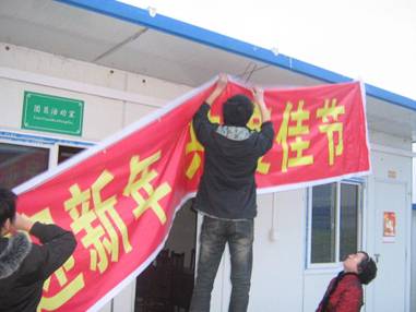 在大家的共同努力下,“暖春北川”活动已准备就绪,板房活动区焕然一新,给板房区带来了浓浓的年味和春天的气息。