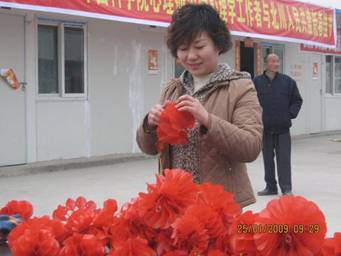 中科院心理所危机干预中心什邡工作站庞云正在拼装红灯笼