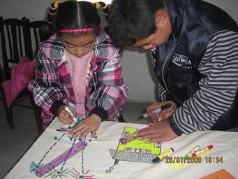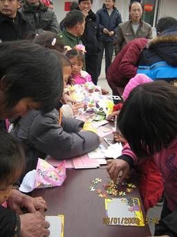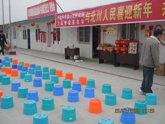 1月26日(初一)中午,中科院的心理专家和志愿者们再次来到这里为板房区的群众继续“暖春北川”活动。