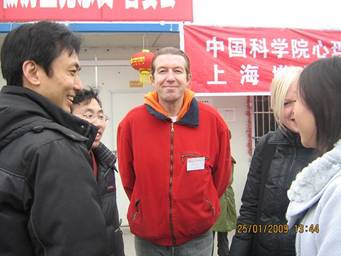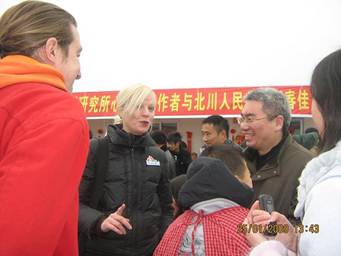 中科院心理所绵竹站站长祝卓宏博士(右二)与无国界医生组织负责人(左一)、(左二)在交流