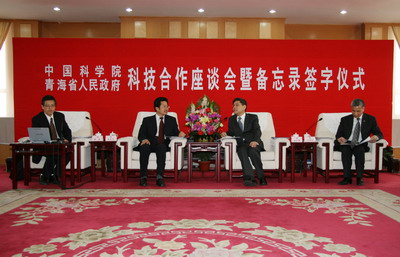 3月10日上午,中国科学院与青海省政府科技合作座谈会暨备忘录签字仪式在京举行。中科院副院长施尔畏与青海省副省长高云龙代表双方签署备忘录。中科院副院长丁仲礼出席会议并讲话。