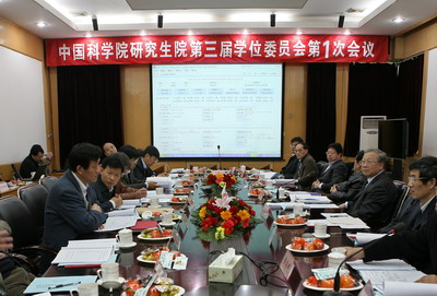 中科院研究生院第三届学位委员会第一次会议召开 4月2日上午,中国科学院研究生院第三届学位委员会第一次会议在北京玉泉路园区召开。全国人大常委会副委员长、中国科学院院长、中国科学院研究生院第三届学位委员会主席路甬祥院士主持会议。研究生院第三届学位委员会副主席王恩哥、黄荣辉、陈晓亚、李国杰院士及本届学位委员会委员共25人参加了会议。 研究生院第三届学位委员会委员共有27名成员,主要由11个学科群学位分委员会的主席或副主席组成。第三届学位委员会下设数学与系统科学等11个学科群学位分委员会,由来自108个研究生培养单位的177名委员组成。 会议听取了研究生院十一个学科群分委员会主席关于本学科群组在4月1日下午召开的各分委员会会议情况汇报;审核了拟授博士、硕士学位申请人员名单,并进行了投票表决,共审议通过了99个培养单位的1243名博士学位申请人和726名硕士学位申请人的学位申请;听取了研究生院副院长兼学位办主任王颖教授关于研究生院学位及相关工作的汇报;讨论并修订了研究生院学位工作相关文件。