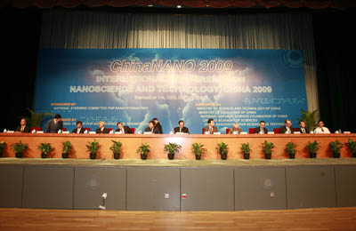2009中国国际纳米科学技术会议(ChinaNANO 2009)于9月1日在北京国际会议中心召开。这是继2005、2007中国国际纳米科学技术会议在北京成功举办之后,由国家纳米科技指导协调委员会主办、国家纳米科学中心承办的第三次国际会议。中国科学院常务副院长、国家纳米科技指导协调委员会副主任白春礼出席大会并担任本次大会主席。大会得到教育部、科技部、中国科学院、国家自然科学基金委员会、中国科协等单位的大力支持。