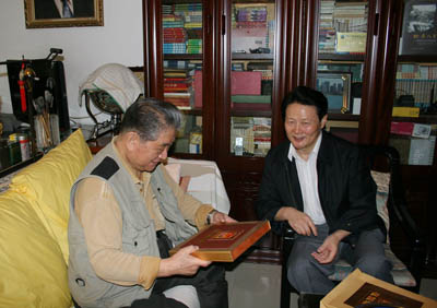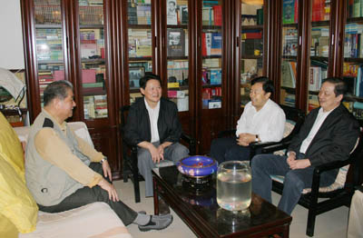 9月8日上午,在新中国成立60周年之际,中组部副部长李智勇在中央国家机关工委副书记俞贵麟,中国科学院党组成员、中纪委驻中科院纪检组组长王庭大的陪同下,专程到中科院院士、地质地球所研究员刘光鼎家中看望慰问,并向这位老科学家致以亲切的问候。 李智勇与刘光鼎院士亲切交谈,并详细了解了他的生活和工作情况,表达了中央领导对为建立和建设新中国做出过特殊贡献的老一代科学家的关心和敬意。李智勇将中组部为纪念新中国成立60周年而特别制作的纪念品赠与刘光鼎院士,并与刘光鼎院士亲切合影。中国科学院北京分院副院长欧龙新、地质地球所党委书记李广山慰问时在座。