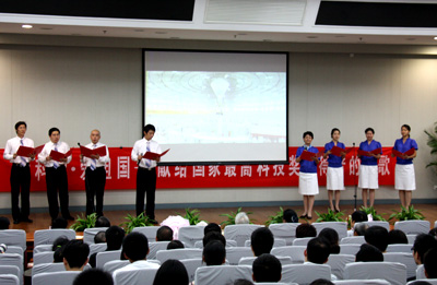 中科院举行“爱祖国,爱科学”诗歌朗诵会 9月19日,在中科院北京分院的大力支持下,由中科院文联、院团委等单位主办的“爱祖国,爱科学——献给国家最高科技奖获得者的颂歌”诗歌朗诵会在北京分院创新文化广场(国家科学图书馆)举行。会上,北京朗诵艺术团的艺术家们,以一场特别的诗歌朗诵会迎接新中国成立60周年、中国科学院成立60周年。 殷之光、朱琳、冯福生、杨青、杜宁林、雷瑞琴、郑健康、王世贵、张松松等十余位著名艺术家,先后朗诵了诗人郭曰方创作的献给吴文俊、黄昆、王选、刘东生、叶笃正、吴孟超、李振声、闵恩泽、吴征镒、徐光宪10位国家最高科技奖获得者的颂歌。中国科学院、中国科协的领导及首都一些高校的师生出席了朗诵会。中国科学院党组副书记方新、中国科学院创新文化建设领导小组副组长郭传杰以及“两弹元勋”郭永怀先生的夫人李佩教授等与大家一起观看了演出。据悉,为国家最高科技奖获得者举办专场诗歌朗诵会,这在我国尚属首次。 中国科学院党组副书记方新在致辞时指出,60年来,在科技战线涌现出许多的杰出人物,许多老一辈科学家以强烈的爱国主义精神,艰苦奋斗,无私奉献,为我国和中国科学院的科技发展做出了历史性的贡献。铭记几代科技工作者的卓越贡献,弘扬他们的崇高精神,学习他们的高尚品德,感受他们的人格魅力,对实现我国新时期的战略发展目标,贯彻落实中央提出的科学发展观,鼓舞广大科技工作者继续努力奋斗具有重要意义。从这些最高科技奖获得者的身上,我们突出地感受到他们始终把自己的追求与祖国的需要紧密联系在一起。这种永恒的精神追求正是我们中华民族持续发展的巨大动力和不竭源泉。用文学艺术形式展示科学家的风采,表现中华民族精神,是文化艺术工作者的光荣职责。在实施知识创新工程中,希望中国科学院各级单位继续深入抓好创新文化建设,以文学艺术形式大力弘扬以人为本、和谐奋进的时代精神,为实现国家和中国科学院科技发展的战略目标而努力奋斗。 几年来,中国科学院文联主席郭曰方创作了100多首献给科学家的颂歌,先后在全国重点高校和科研院所举办了数十场专场诗歌朗诵演唱会,受到观众的热烈欢迎,在社会上引起强烈反响。这些诗作被誉为高扬时代主旋律、充满爱国主义和科学精神,将科学与艺术完美结合的优秀诗篇。 诗歌朗诵会由中国科学院文联、中国科学院团委、科学时报社、国家科学图书馆和中科院研究生院、声学研究所、计算技术研究所、化学研究所团委共同举办。