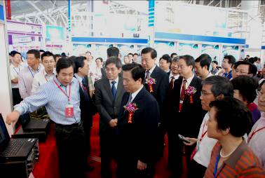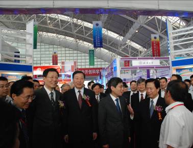 中科院副院长施尔畏陪同江苏省委书记梁保华,省长罗志军,科技部党组书记、副部长李学勇等领导参观中科院展区