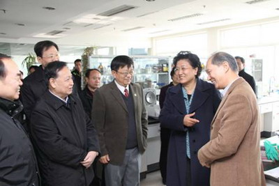 刘延东还询问了科研条件和研究经费情况。她指出,目前科技投入基本上已不成为科技发展的主要问题,但是国家的投入不能仅仅换来一堆论文,更要有解决国家重大需求的实际成果。今年在金融危机的形势下,中央财政对科学研究仍然投入了1461亿元,比去年增加24.5%。走出危机,实现危机过后的繁荣,要靠科学技术的推动。国家对新能源、信息、生物技术等领域非常重视,这些具有战略意义的新兴产业的发展关键要靠科技支撑。科研人员要抓准问题,潜下心来,坚持5年、10年、20年深入进行研究,产出真正的成果。