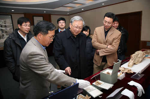 2月3日,中科院院长路甬祥一行到中科院古脊椎动物与古人类研究所(简称古脊椎所)调研,仔细观看了古脊椎所最新的科研成果和重要发现,听取了该所常务副所长周忠和关于研究所近期工作进展和今后工作计划的汇报,并与所领导班子成员、科研骨干和部门负责人进行了座谈交流。