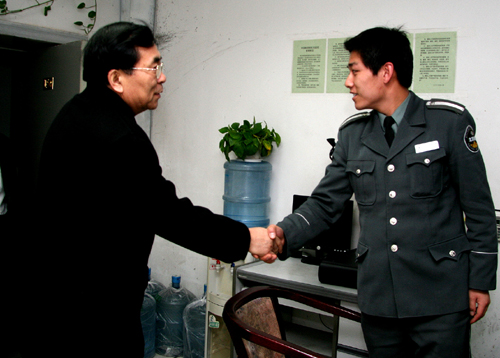 白春礼与总监控室安保干事亲切握手