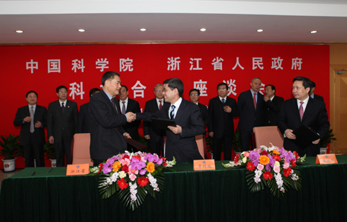 会议听取了关于2009年院省科技合作工作进展和2010年工作计划的专题汇报,院省双方就科技合作工作的相关事宜进行了会商。会上,院省主要领导给中科院与浙江省互派的第二批科技特派员代表颁发了聘书。同时,院方与浙江省、温州市、舟山市、嘉兴市和杭州市就2010年度几项推进的具体工作签署了合作协议书。