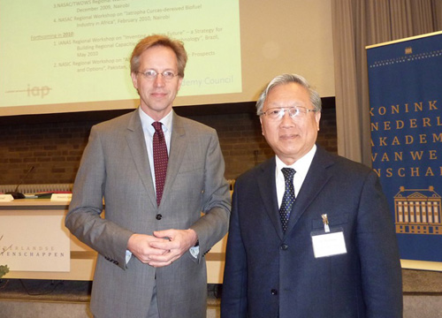 IAC联合主席路甬祥和荷兰皇科院院长Robbert Dijikgraaf共同主持了本届IAC理事会。会议首先听取了IAC执行主任坎贝尔的工作报告和财务报告,讨论了IAC未来战略报告,提出了2010年的中心工作。路院长强调,IAC要遵守其章程所确定的责任,高举科学和民主的旗帜,建立和保持自己的科学声誉,坚持对全球热点问题进行研究并提供高质量的咨询报告,同时兼顾发达国家和发展中国家所关切的问题,尤其是关注最不发达国家的利益和发展,为科学促进可持续发展做出重要贡献。